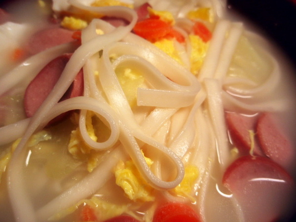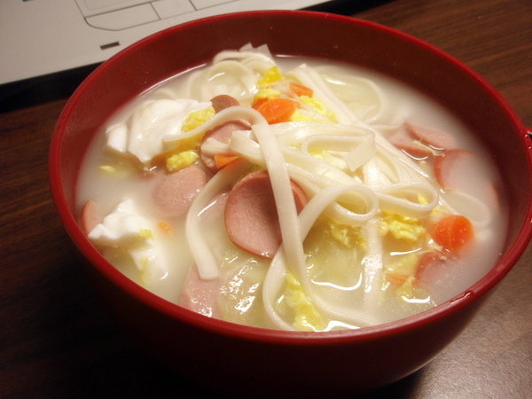 圖片中的湯看起來有點淡,是因為在煮的時候我只有放入兩片起司片,所以吃起來只有淡淡的起司味。
